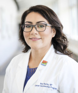 Ana Rocha has been a registered nurse (RN) for 15 years, in various settings in oncology. As a Nurse Practitioner, she collaborates with the multidisciplinary team to provide survivorship care in the outpatient setting at Providence Saint John’s Health Center. She is focused on improving quality of life through prevention, surveillance, management of late effects, and psycho-social impact of cancer. Ana’s mission is to be a partner in health, to help each individual achieve their own personal goals for wellness. She seeks to empower each patient as a resource through education and advocacy. She enjoys being an active member of the community by presenting on various health topics. She is bilingual in Spanish and English.