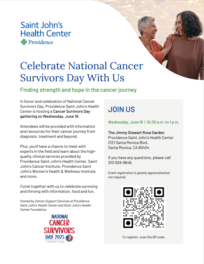 Wednesday, June 18th, join Saint John’s Health Center for national cancer survivors day. Meet physicians, care providers, and support groups! Please register if you plan to come.