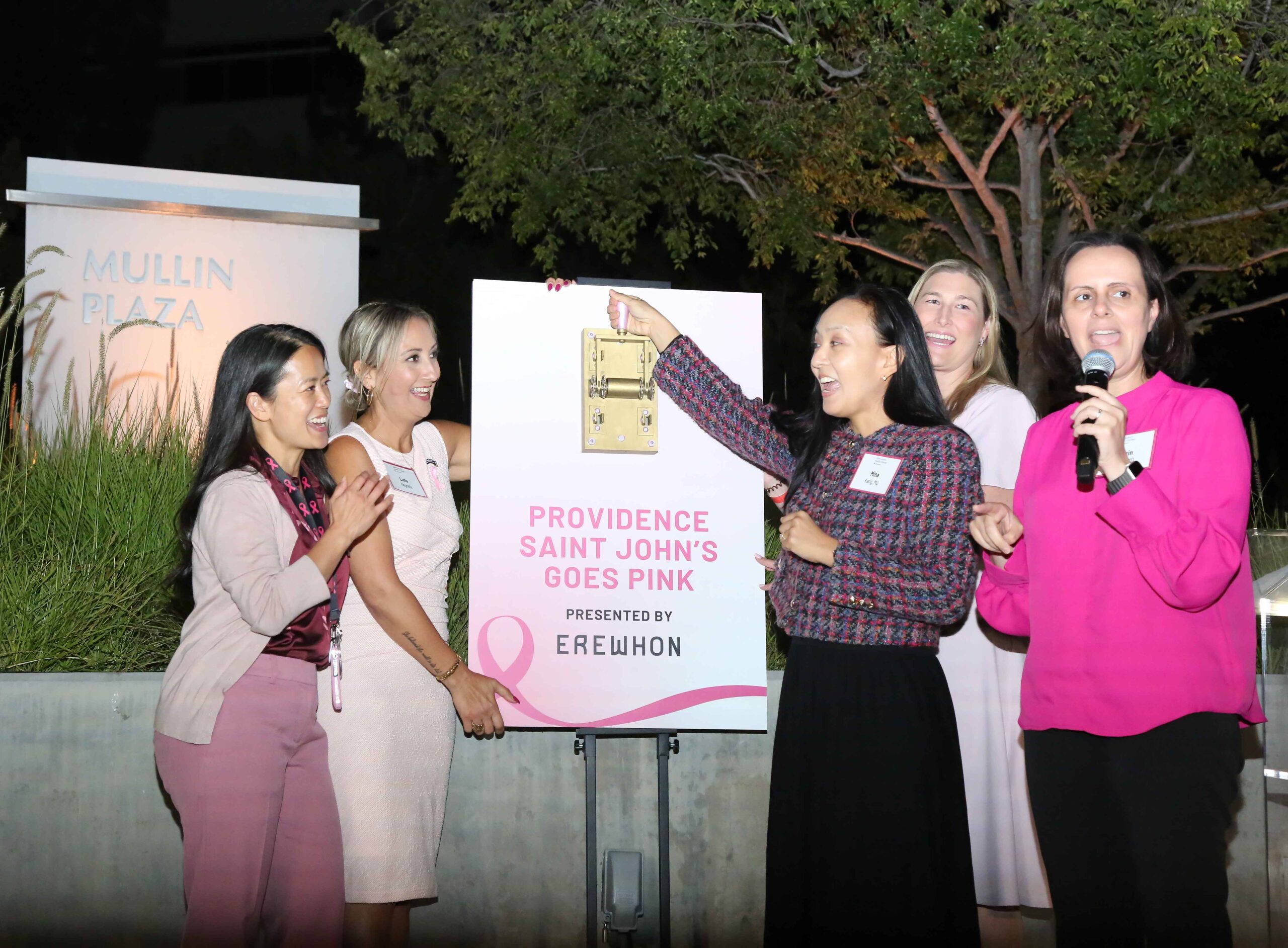 The evening culminated in a joyful countdown led by Dr. Mina King, Chief Medical Officer at Providence Saint John’s, as the hospital lit up in a brilliant pink glow—casting a beacon of hope across Santa Monica.