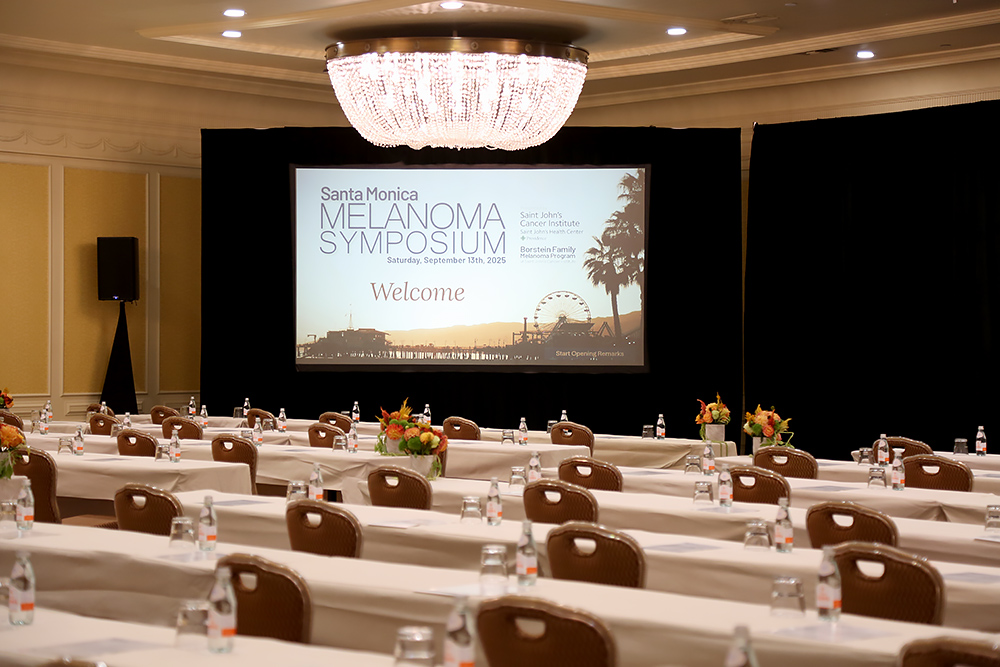 On Saturday, September 13th, the Fairmont Miramar Hotel & Bungalows welcomed guests to the Santa Monica Melanoma Symposium with a warm continental breakfast and ocean views that set the tone for a day of learning and connection. Attendees checked in at the registration desk, receiving name badges and note booklets before gathering in the elegant Sapphire Ballroom, which comfortably seats up to 150 guests.
